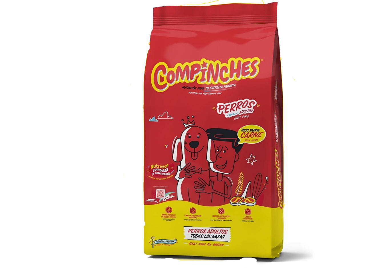 Proteínas de origen animal: harina de carne y hueso vacuno; proteínas de origen vegetal: harina de soja, gluten de maíz; cereales: harina de maíz, harina de trigo, salvado de trigo, salvado de maíz; saborizantes naturales: aceite de pollo, hidrolizado de subproductos vacunos; vitaminas: A, D3, E, K, B1, B2, B3, B5, B6, B9, B12, biotina, colina; minerales: sal, (óxido de zinc, sulfato de cobre, óxido de manganeso, sulfato ferroso, selenito de sodio, iodato de calcio, carbonato de cobalto); carbonato de calcio, fosfato de calcio; aminoácidos esenciales: L-lisina, DL-metionina; antioxidantes: tocoferoles naturales, lecitina, extracto de romero.