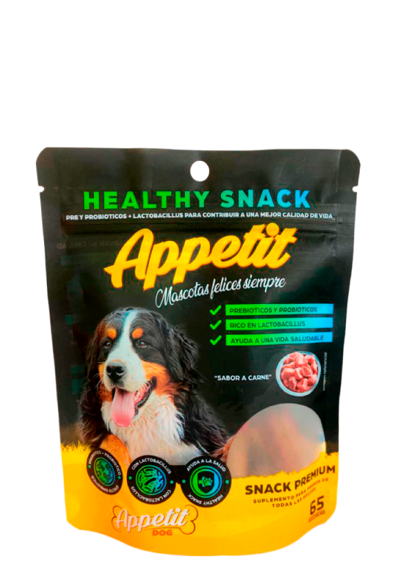 Los simbióticos son productos que contienen a la vez prebióticos y probióticos, cuyo objetivo es restaurar y/o mantener la buena salud de la microbiota intestinal. El consumo diario de nuestros HEALTHY SNACKS contribuye a incrementar la supervivencia de bacterias específicas en su fase de tránsito intestinal ayudando a aumentar su potencialidad para instalarse en el colon y desarrollar su función con efectos beneficiosos en la salud de nuestras mascotas.